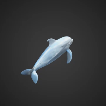A dynamic and playful rigged 3D model of a dolphin, designed for realistic animation. The dolphin features smooth, streamlined body geometry with a vibrant blue-gray skin texture, adorned with subtle gradients to replicate natural coloration. The surface texture incorporates fine details like light speckling and reflective qualities that mimic wet skin. This model emphasizes a friendly demeanor, with playful poses that are perfect for aquatic scenes in games or animations.