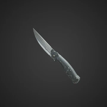 A highly detailed 3D model of a combat knife designed for realism and functionality, suitable for digital asset marketplaces. The knife features a double-edged blade with a sleek, slightly curved profile, crafted from polished stainless steel that reflects light with a subtle sheen. The handle is ergonomically designed with a textured black rubber grip, providing a realistic tactile feel. The guard is made from matte-finished aluminum, ensuring durability and a military aesthetic. Surface details include fine engravings on the blade, simulating wear and tear, and a realistic patina effect for added authenticity. The model is rendered in a muted color palette, focusing on dark metallic tones and deep blacks to emphasize its tactical nature. This knife is aimed at game developers, filmmakers, and 3D artists looking for high-quality military gear assets.